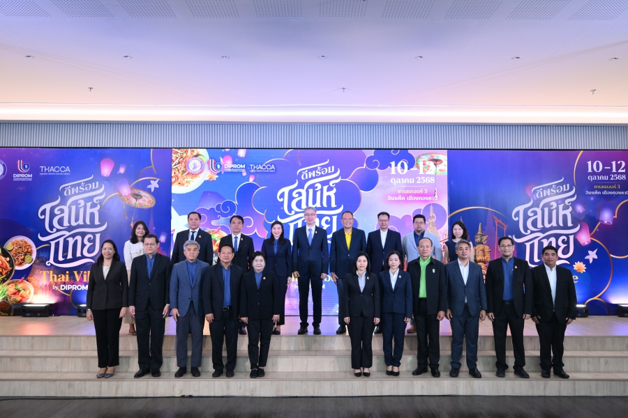 จัด มหกรรม ‘ดีพร้อมเสน่ห์ไทย: Thai Vibe by DIPROM’ เดินหน้าขับเคลื่อนซอฟต์พาวเวอร์ไทยผ่านอุตสาหกรรมอาหาร จัดกิจกรรมเชื่อมโยงและสร้างโอกาสทางธุรกิจ เปิดพื้นที่ให้ผู้ประกอบการกว่า 400 ร้านค้า แสดงผลงาน ทดลองตลาดจริง และจับคู่ธุรกิจ หวังต่อยอดเชิงพาณิชย์และกระตุ้นเศรษฐกิจสร้างสรรค์อย่างเป็นรูปธรรม ดีพร้อม คาดว่าจะดึงดูดผู้เข้าร่วมงานได้ไม่ต่ำกว่า 30,000 คน และสามารถสร้างมูลค่าทางเศรษฐกิจได้ไม่ต่ำกว่า 250 ล้านบาท ตอกย้ำการส่งเสริมผู้ประกอบการไทยผ่านนโยบาย “ดีพร้อมคอมมูนิตี้ ที่นี่มีแต่ให้”
