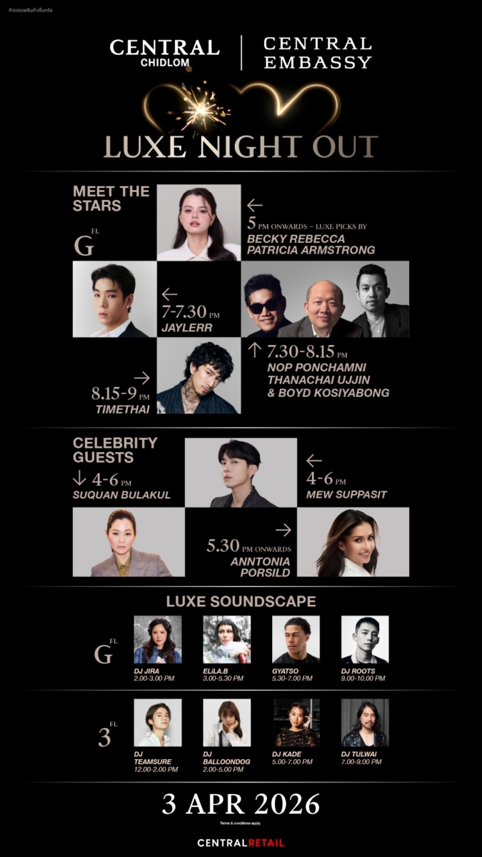 ✨ 5 เหตุผลที่คุณต้องมาสัมผัสงาน “CENTRAL LUXE NIGHT OUT” ค่ำคืนที่แฟชั่น ไลฟ์สไตล์ และดนตรี ถูกถ่ายทอดเป็นประสบการณ์เหนือระดับอย่างมีเอกลักษณ์ ใจกลางกรุงเทพฯ