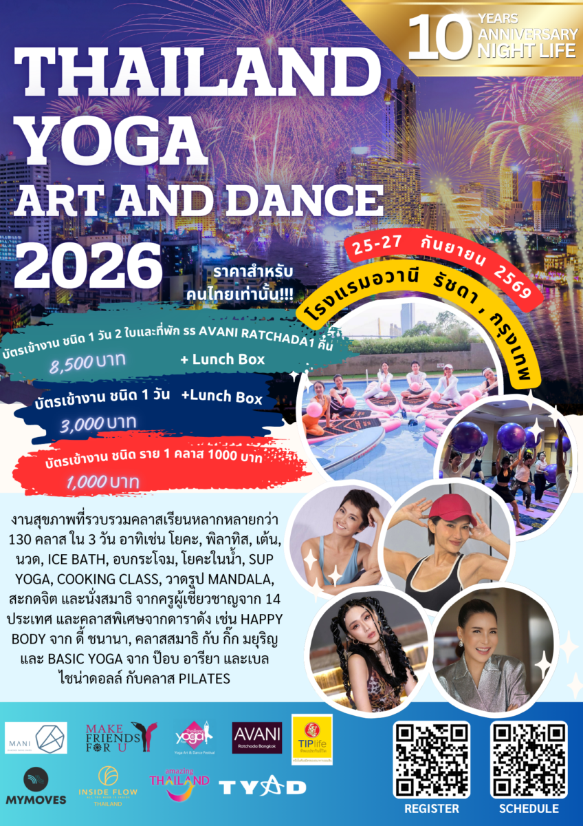 มาดูแลสุขภาพกันกับคลาสออกกำลังกาย ทั้งกาย และใจ ในงาน TYAD ครบรอบ 10 ปี ที่จะจัดขึ้นในวันที่ 25-27 กย 2569 ที่ รร อวานี รัชดา